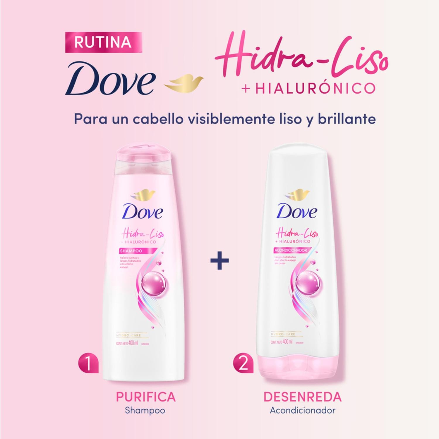 - Diseñada para ofrecer un cabello visiblemente liso y radiante, esta fórmula única de Dove fusiona su acción de hidratación profunda con el ácido hialurónico, brindando resultados excepcionales.