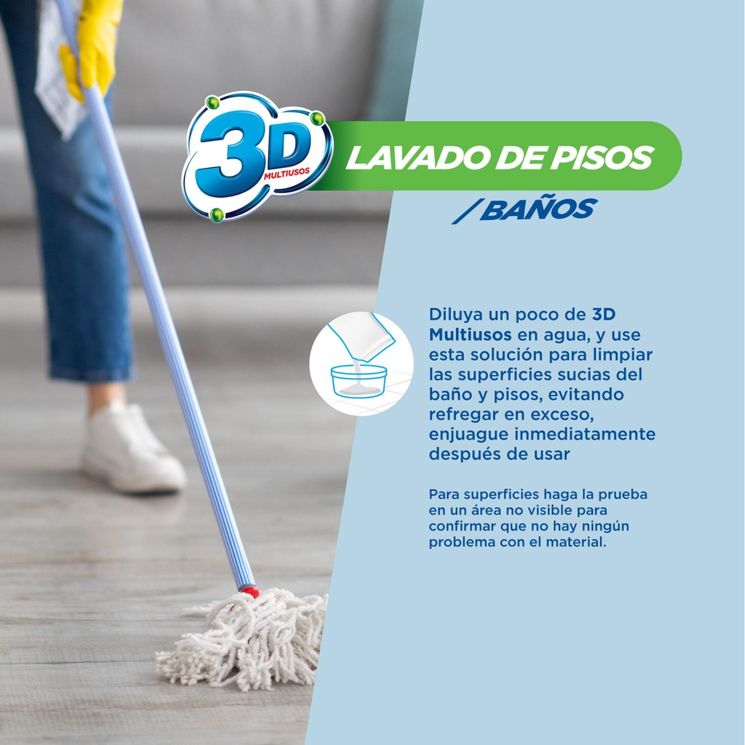 etergente en polvo azul 3D Multiusos: Despercude, Desmancha Y Desengrasa Gracias A Su Fórmula Exclusiva Con Bicarbonato Y Aloe Vera , Con Su Poder Antibacterial Desinfecta Ropa Y Superficies. Presentación de 3KG. El detergente 3D en polvo azul es una fórmula de lavado de alto rendimiento diseñada para limpiar eficazmente la ropa, manteniendo su blancura y color, eliminando las manchas. Este detergente en polvo ofrece una limpieza profunda y un cuidado óptimo de las telas, garantizando resultados en cada lavado. 3D Multiusos en polvo es un detergente de gran versatilidad que puede utilizarse para diversas tareas de limpieza y aseo del hogar. Su fórmula de alto rendimiento lo hace ideal para el lavado de ropa, proporcionando una limpieza profunda y eficaz, así como para la limpieza de superficies, incluyendo pisos y baños. Este producto multipropósito te ofrece la comodidad de un solo detergente para abordar múltiples necesidades de limpieza, garantizando resultados excepcionales en cada aplicación. Será el mejor aliado para el cuidado del hogar para solucionar todas las necesidades que se presentan en el día a día. Formula libre de fosfatos. Mantener en un lugar seco y fresco para la conservación de sus propiedades. Este es un producto fabricado por Unilever Andina Colombia LTDA.