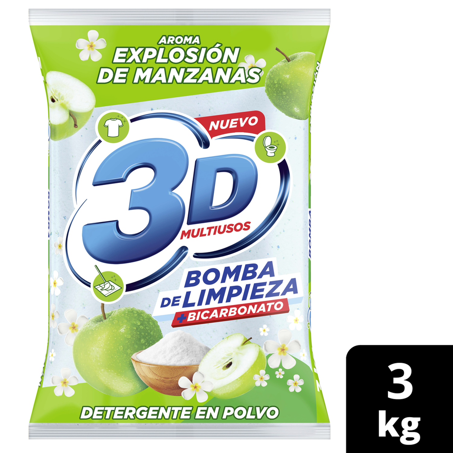 Detergente Polvo 3D Multiusos Manzana 3KG