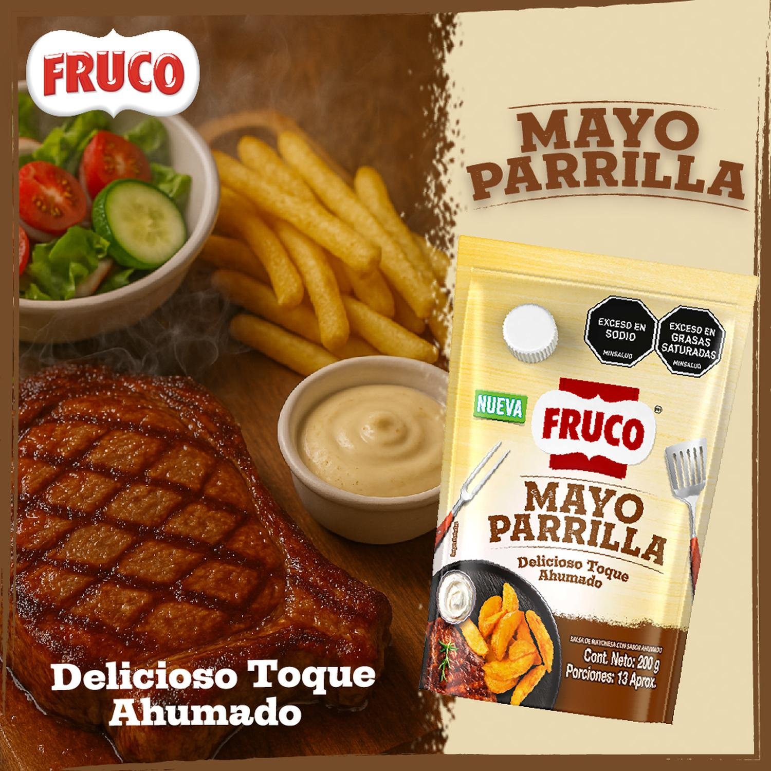 Lleva el sabor de tus platos al siguiente nivel con la intensidad única de la nueva Mayoparrilla, una deliciosa combinación de la cremosidad de la mayonesa con el inconfundible toque ahumado de la parrilla. Ideal para acompañar hamburguesas, papas, carnes, sándwiches o lo que se te antoje, su sabor robusto y perfectamente equilibrado convierte cualquier comida en una experiencia memorable. Esta nueva versión ha sido creada para los verdaderos amantes del sabor, aquellos que buscan algo diferente, intenso y auténtico.