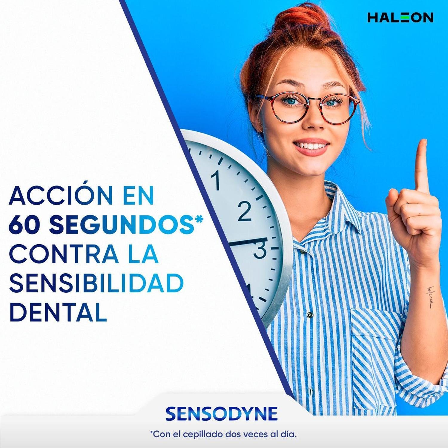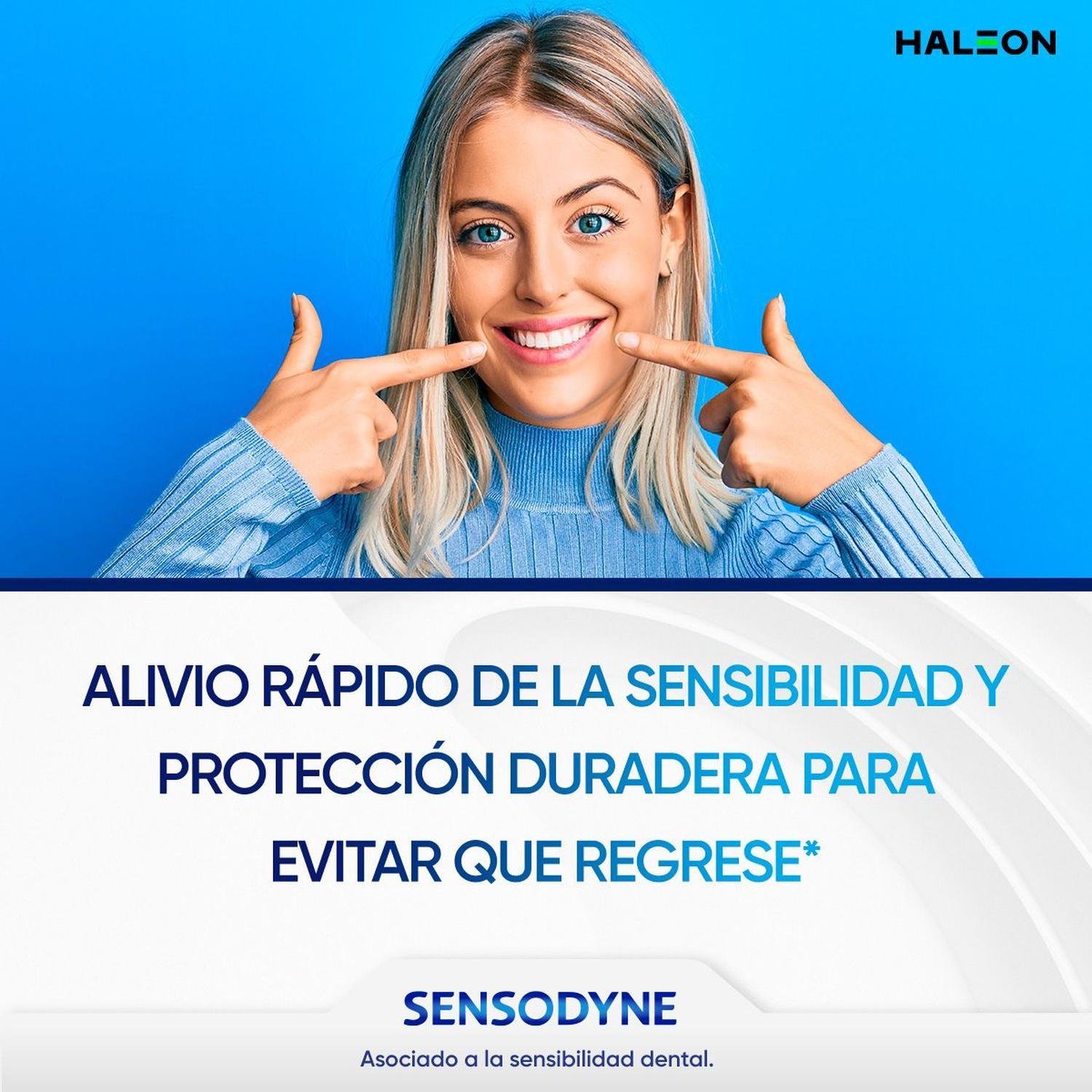 La crema dental Sensodyne Rápido Alivio , te brinda un alivio rápido de la sensibilidad dental en tan sólo 60 segundos* desde el primer cepillado* y una protección duradera para evitar que regrese la sensibilidad dental*. Gracias a su fórmula especializada ayuda a remover las manchas de tus dientes. *Con el cepillado 2 veces al día. Siempre lea las etiquetas antes de usar.